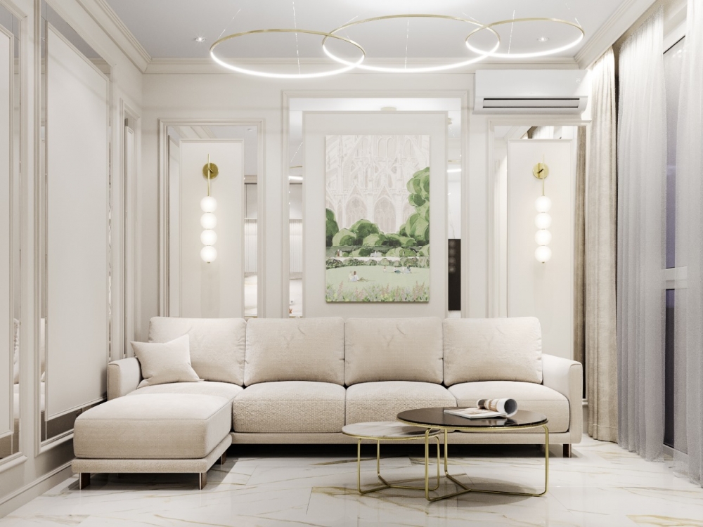 Разработали дизайн-проект интерьера двухкомнатной квартиры в Краснодаре. Получился светлый и уютный интерьер в стиле Неоклассика.