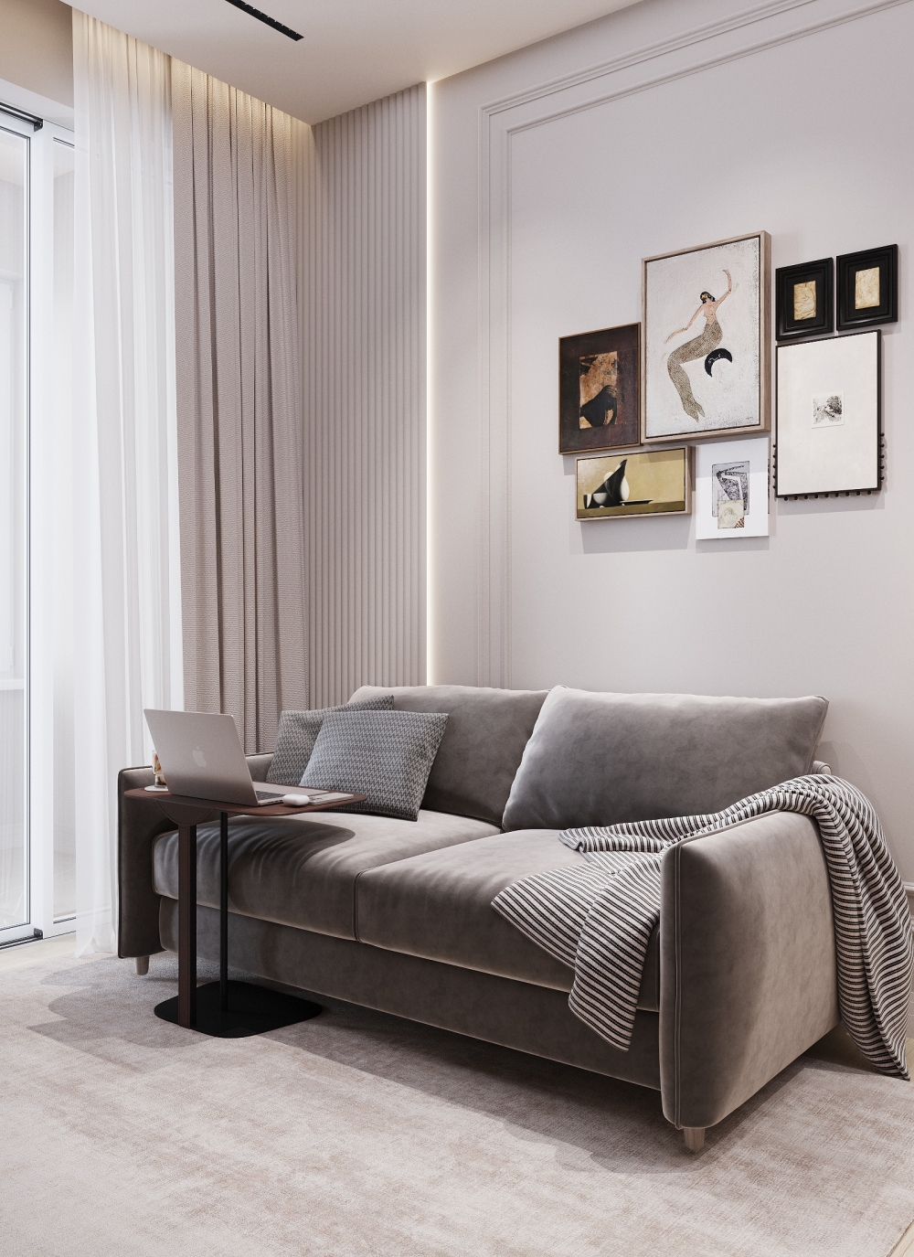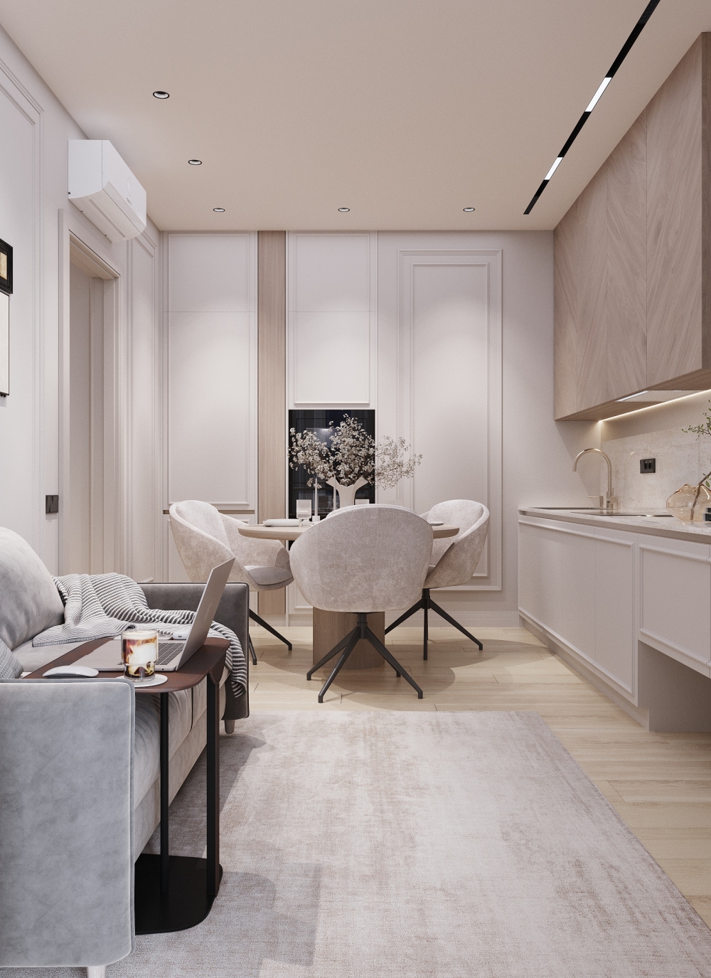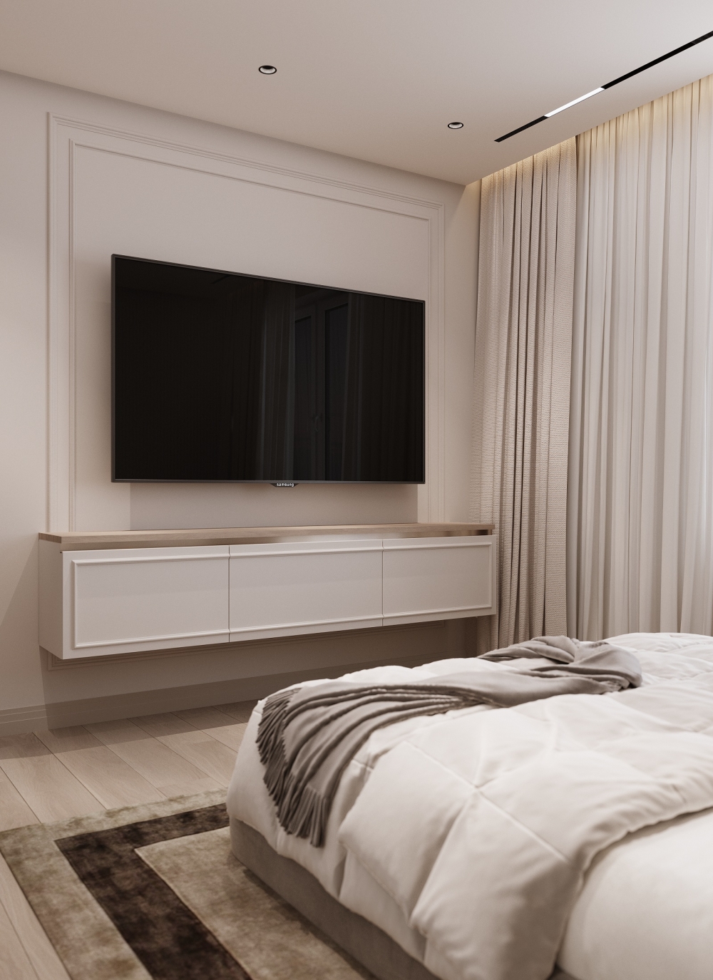 Какой прекрасный дизайн-проект интерьера квартиры у нас получился! Проект квартиры разрабатывался для молодого человека. Квартира находится в Краснодаре в ЖК "Сердце". Светлый интерьер в стиле Неокассика создает уют, простор и комфорт. Заказчик доволен, а это самое главное для нас.